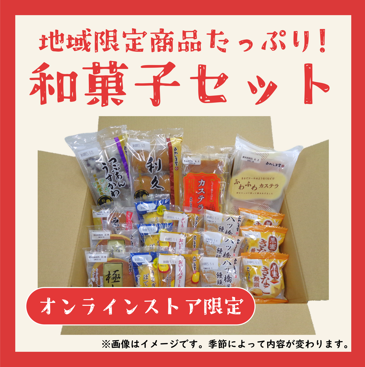 地域限定商品をたっぷり詰め合わせた、ここでしか買えない和菓子セット!季節によって中身が異なります。「関東でも売ってください!」「食べたいな~と思ったらこっちでは売っていなかった…」というお客さまのお声から生まれたオンラインストア限定商品です。