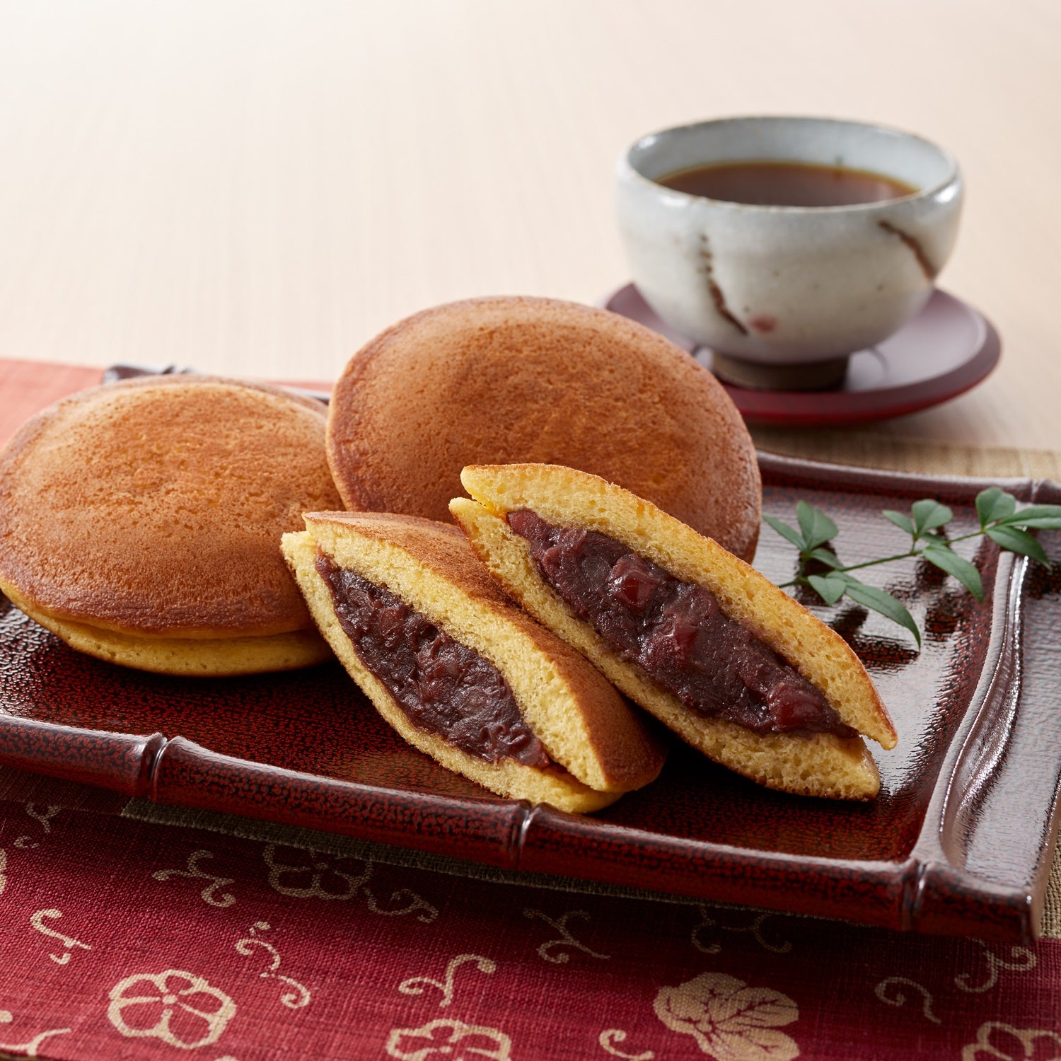 卵をたっぷりと使用した生地を丁寧に焼き上げ、自家製餡を挟みました。餡は小豆から厳選しており、風味良く炊き上げた自慢の小豆粒あん。しっとりきめ細かい生地と、小豆の風味たっぷりの餡にリピーターも多いイチオシのどら焼です。